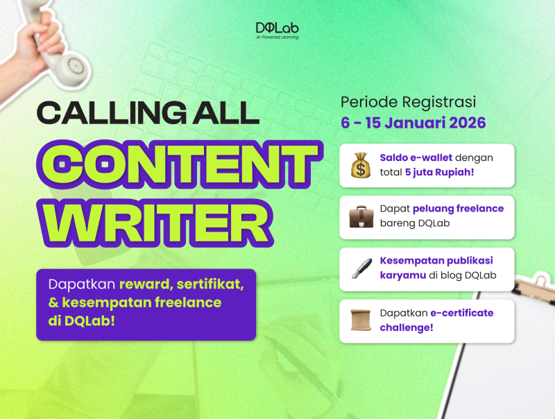 Yuk, ikut DQLab Content Writer Challenge! Lewat challenge ini, Sahabat DQ bisa berbagi cerita, pengalaman, atau insight seputar ilmu data, serta berkesempatan untuk mendapatkan fresh money, e-certificate, dan peluang freelance bareng DQLab!
