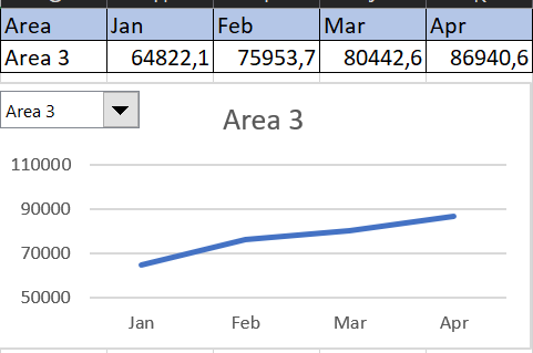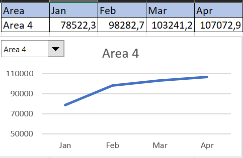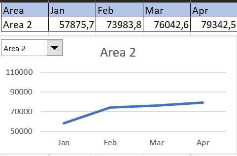 Terakhir, buat line chart berdasarkan tabel tersebut dan atur tampilannya sesuai keinginanmu. Jika berhasil, maka saat kita ubah drop-down-nya, grafik akan ikut berubah.